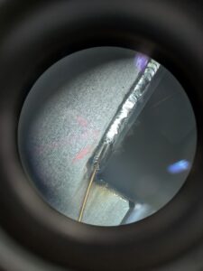 顕微鏡を覗き込み、確認しながら肉盛して行くこともレーザー溶接と同じです。